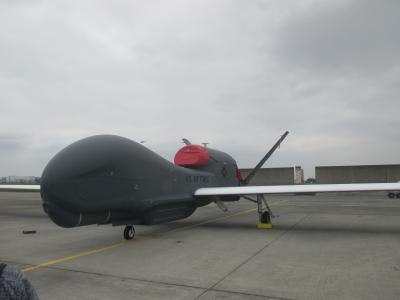 基地に入る際は、大人は身分を確認されます。免許証などの身分証明書を提示し、入場となります。軍用機を沢山見てきました。特に、良かったのが、グローバルホーク、無人航空機です。偵察機なので、武器の搭載はできないようになっています。