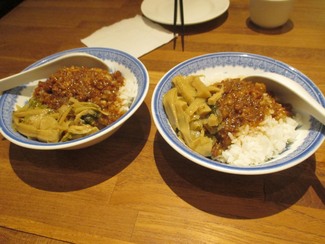 また、カウンターで、麺や点心を注文できます。紙のメニューなので、日によって内容は変わるのかもしれません。とりあえず全部頼んでみました。小さい器に一個づつ入っていました。出来立てで美味しかったです。牛肉麺も大変美味しかったです。