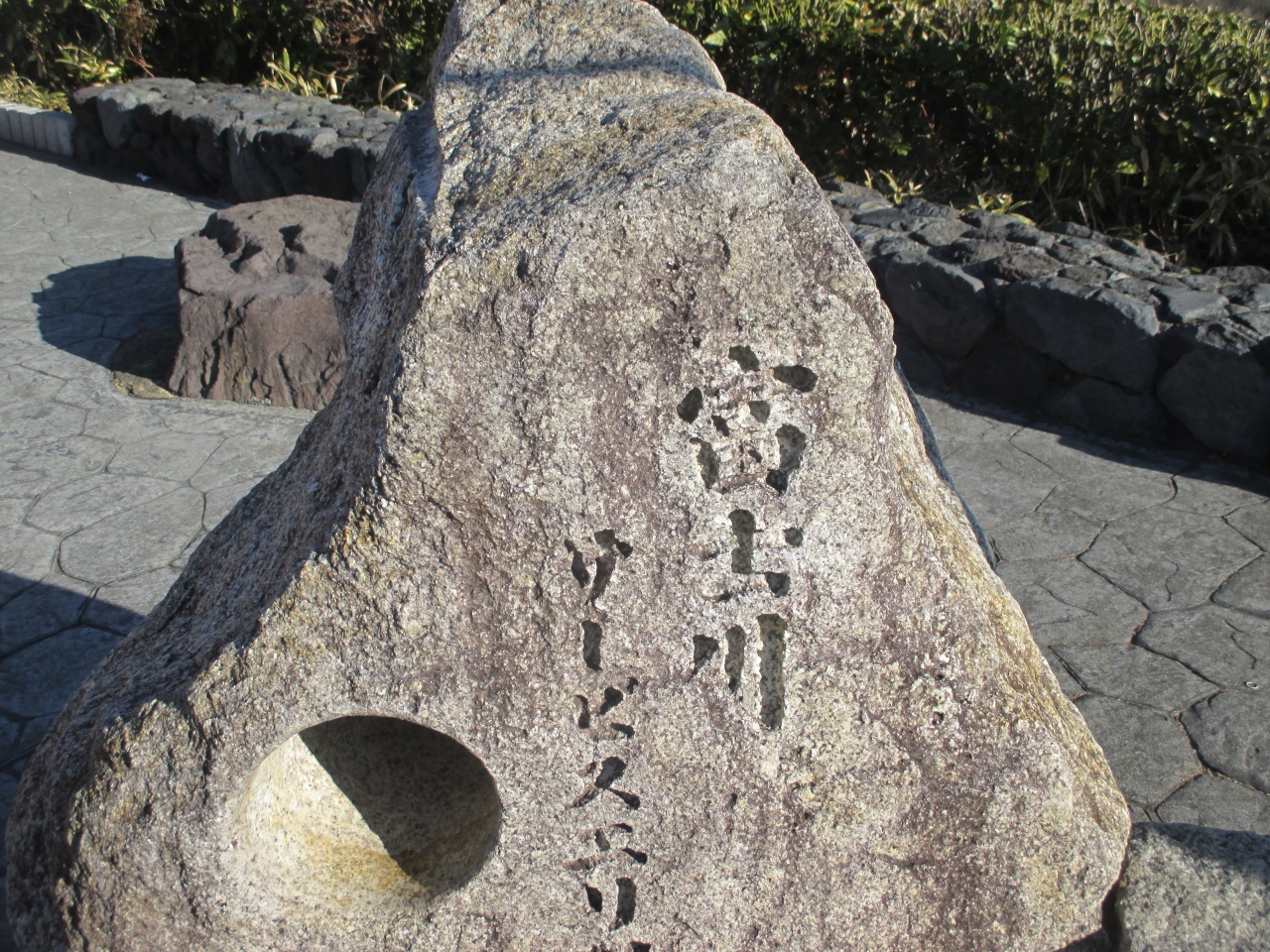 富士川サービスエリアの隅にひっそり、この石があります。富士川に近い方です。