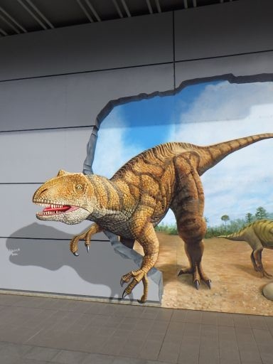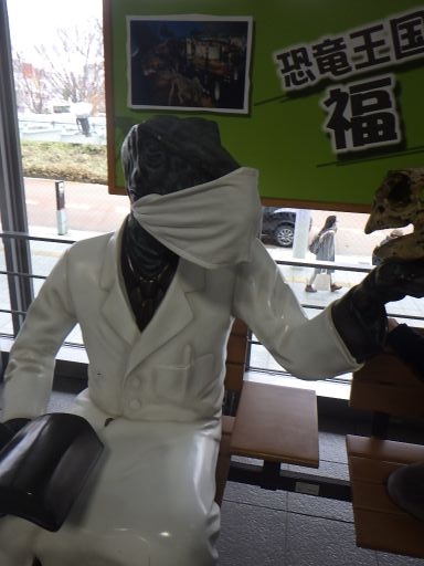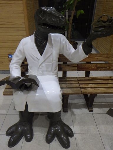 バスセンターのベンチにも恐竜の人形があった。- 旅行時期