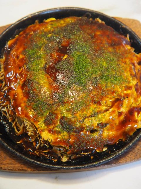 広島風お好み焼きではイカを入れる事は多いが、タコはあまり無い。三原らしいお好み焼きといえる。