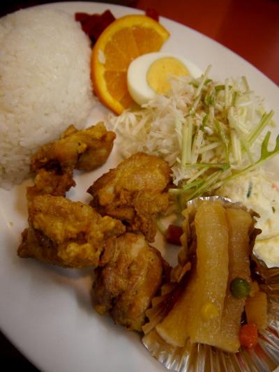 メインと、副菜が日替りとなっていて、この日は唐揚と煮野菜だった。いずれもたっぷり提供される。
