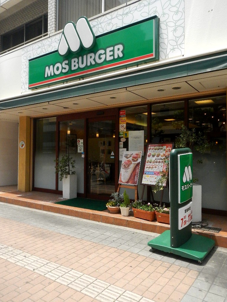 広島市中区八丁堀にあるモスバーガー店舗の一つ。広電白島線の電車通りに面する。