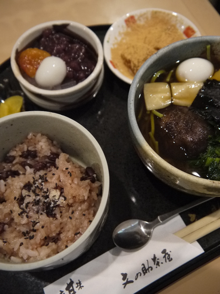 赤飯を食べるのは久し振り。元々赤飯は、それまで一般的に食されていたいわゆる古代米を懐かしんで作ったとされるが……、やはり味や食感はかなり異なる。- 旅行時期