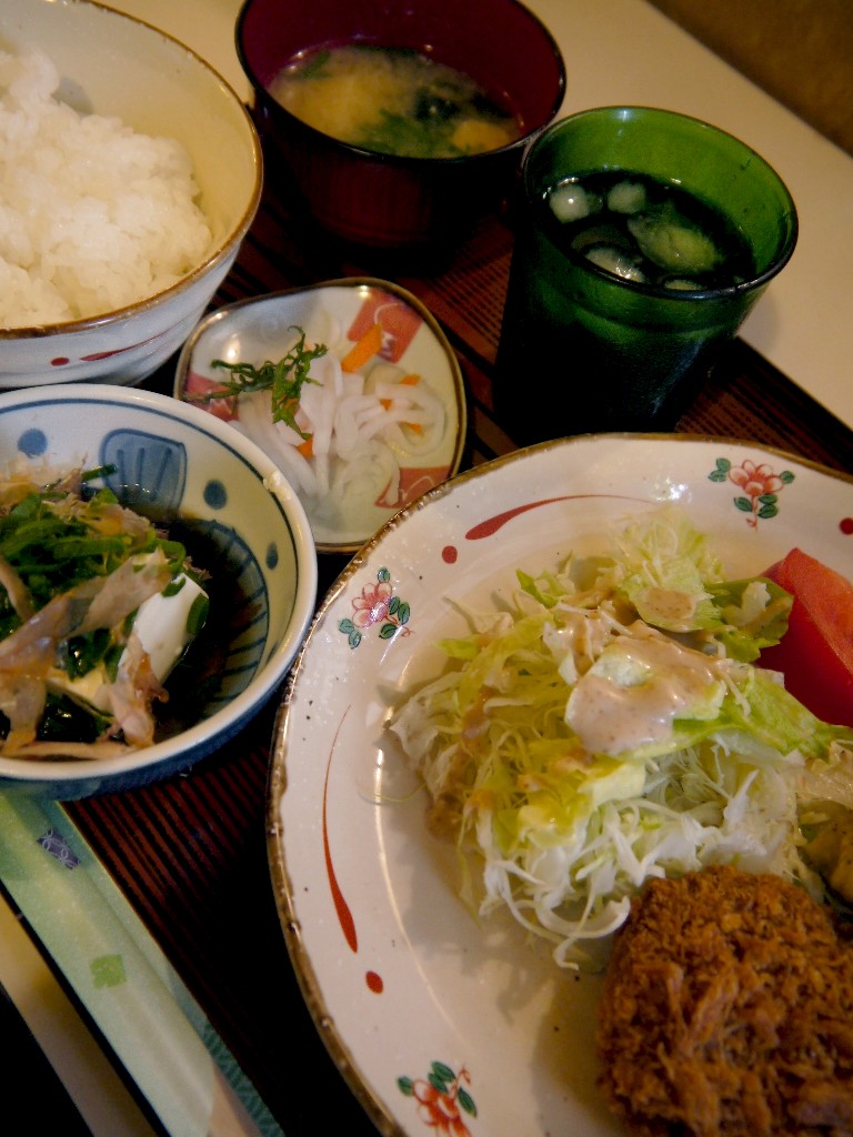 他に、サラダ、漬物、味噌汁、ご飯、そしてアフターコーヒーから成る。- 旅行時期