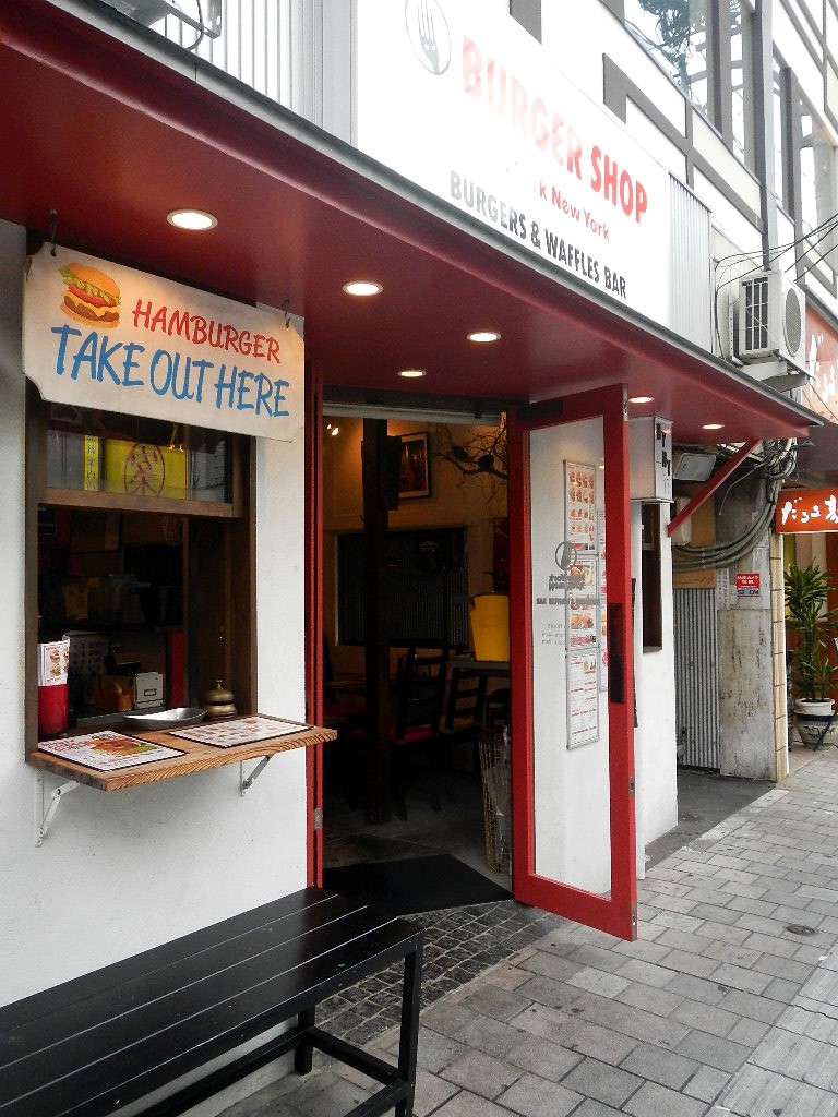並木通りに面するカフェニューヨークによる店。本店は昼営業もあり、様々なメニューを提供するが、当店がハンバーガーやワッフルにメニューを絞り、夕方からの営業で、テイクアウト・デリバリーにも対応している。