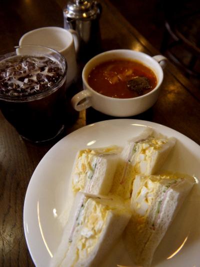 自家製ミックスサンドウィッチ、コーヒーから成る(もう一つのモーニングセットは、菓子パン2個とコーヒー、という内容)。