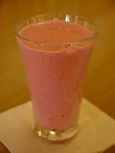 奈良産のいちご(奈良が苺の産地である事を今回初めて知った)を、ミルクと共にミキサーにかけて作ったジュース。