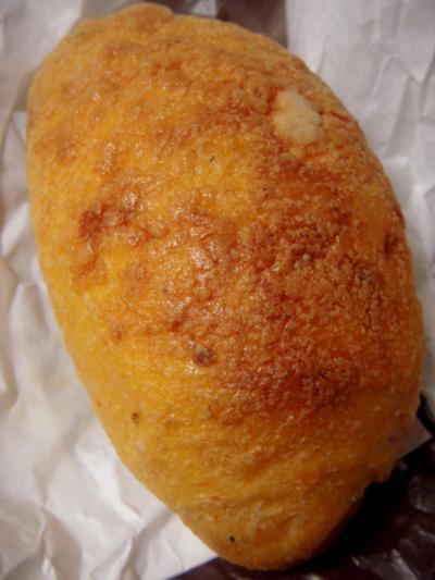 外側に火が通ったチーズが見受けられる楕円形のパン。