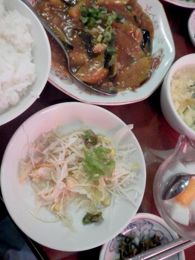 麻婆茄子は、その名に恥じず、茄子がたっぷり。辛さはあまり感じられず、味噌の風味が前面に押し出されている感じ。辛いものが苦手、という人には適していると言える。ボリュームもたっぷり。