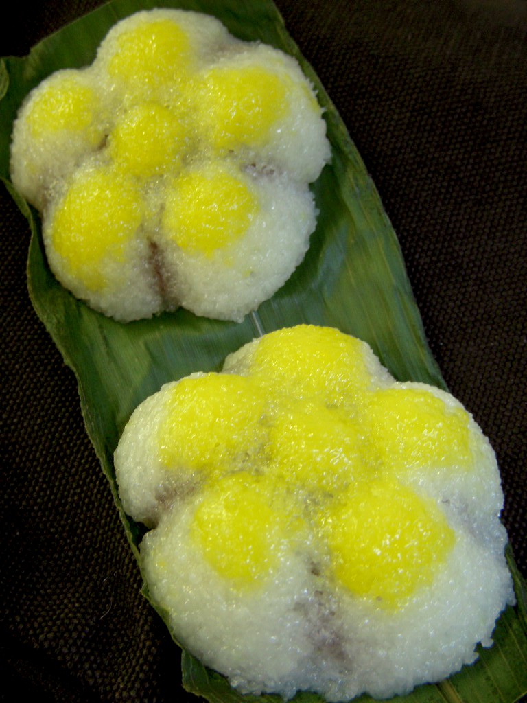 花(梅らしい)の形に薄く広げて固めた餅米(道明寺粉)の中に、漉し餡が。- 旅行時期