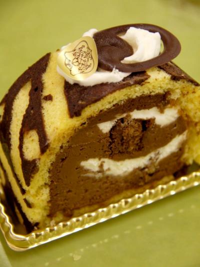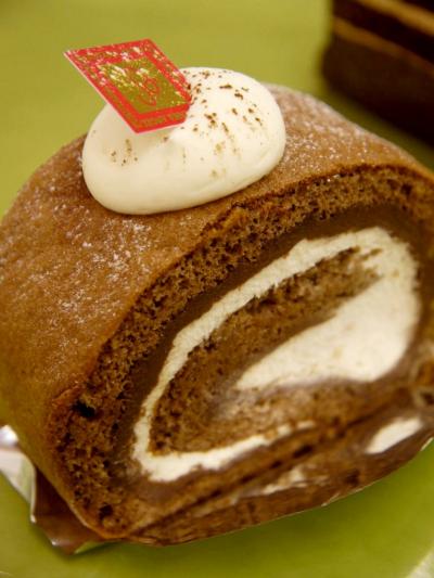 塩こうじを練り込んだチョコレートペーストと、生クリームをココア風味の生地で巻いてある。