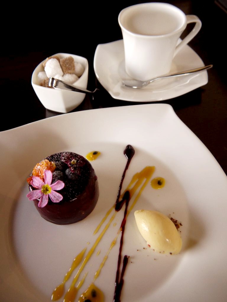 ホテル特製ケーキと、ドリンクから成る。- 旅行時期