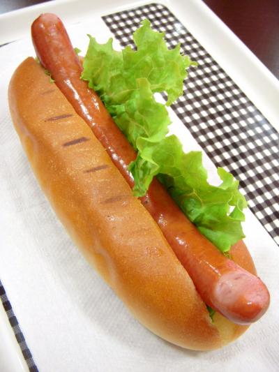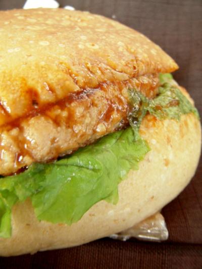 しっとりしたパンに、ハンバーグ、グリーンリーフを挟んだもの。