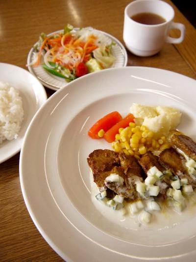 ラム肉スパイス焼ヨーグルトソースは、この日のAランチのメイン。要するに、カレー粉で味付けしたラム肉に、キュウリ入りのヨーグルトソースをかけたもの。エスニックな雰囲気。ラム肉は独特の臭みがあるが、カレースパイスのお陰であまり感じられず、肉の旨味が前面に押し出されていた。柔らかいが、適度な歯応えもあり、「肉を食べている」という気分にさせてくれた。- 旅行時期