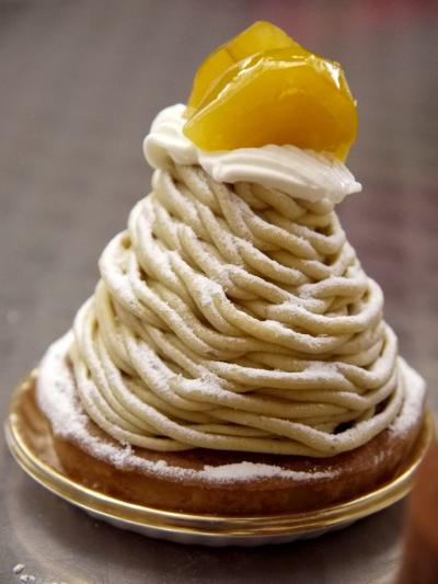 マロンペーストも、中のクリームも硬めで、全体的にしっかりとしたモンブランになっている。- 旅行時期