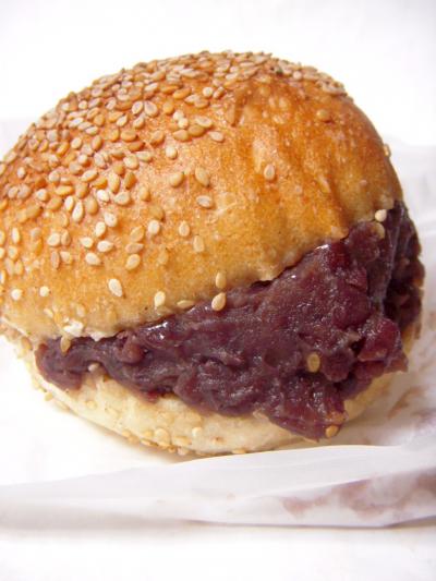 ハンバーガー用のセサミバンズに、粒餡をこれでもか、と詰め込んだもの。