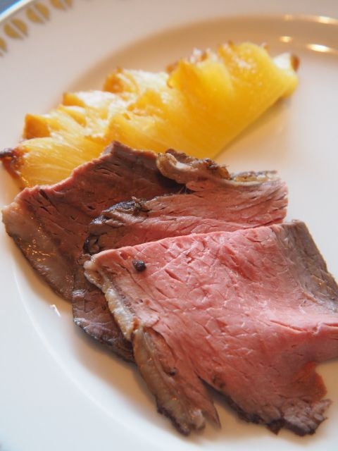 シュラスコは、スタッフが様々な種類をテーブルまで持って来て、食べたい量をスライスしてくれるので、その都度食べられる分を伝えればよい事になっている。
