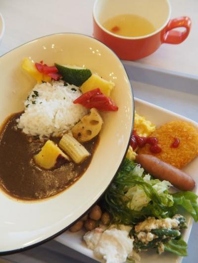 内容は日替わりで、この日提供されたのはカレー、野菜の素揚げ、コロッケ、スクランブルエッグ、サラダ豆、サラダ、パン、ドリンク等が提供された。