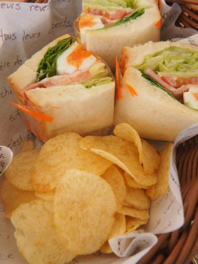 4種類の具材をパンの間にたっぷり挟んでいるので、しっかり摘まんで持ち上げないとバラバラになって具材を個々に食べる羽目になる。