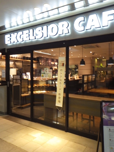 水戸市のJR水戸駅の東西自由通路に面するエクセルシオールカフェ。