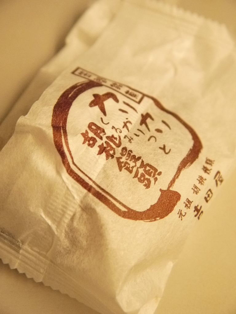 山形の胡桃ゆべしは、餅の部分が硬めだが、こちらの胡桃ゆべしは餅の部分が適度に柔らかく、弾力があり、モチモチ。その中から、胡桃のポリ感を感じられる。