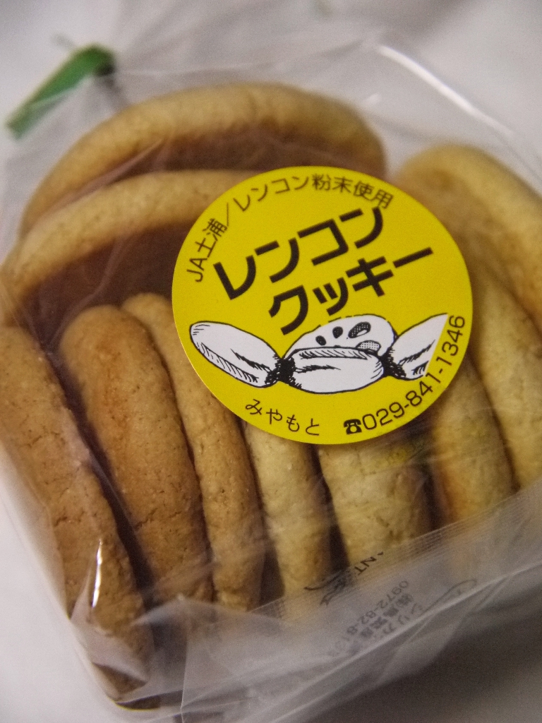 霞ヶ浦の特産物のレンコンの粉末を生地に練り込んだクッキー。