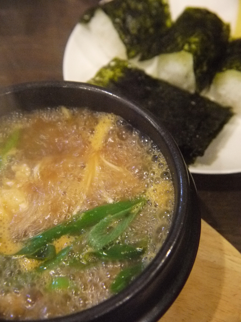 チゲは、辛いのが一般的だが、韓国味噌を使ったテンジャンチゲはそう辛くない、となっていたが、このテンジャンチゲは激辛という程ではないものの、それなりに辛かった。- 旅行時期