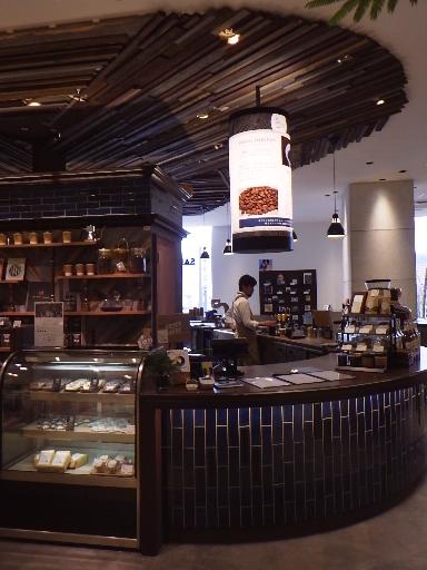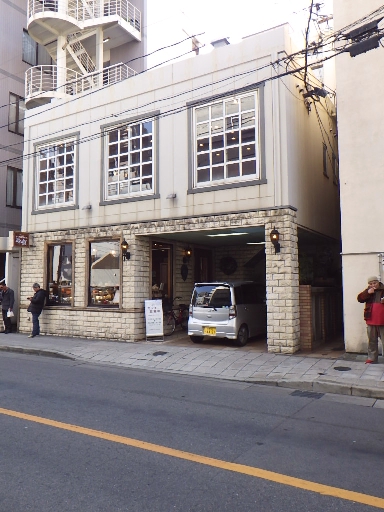 カフェスペースは、建物の奥まった場所にある(厨房は、テイクアウトカウンターも兼ねているので、通りに面している)。