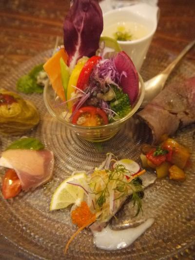 前菜の盛り合わせ、パン、パスタ、デザート3品、ドリンクから成る。
