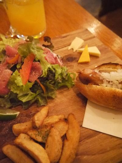 小振りなパンに切れ込みを入れ、図太いソーセージを挟み、オニオンビッツを掛けてある。各席にケチャップとマスタードが用意されているので、それらを掛けてホットドッグを完成させる。ソーセージはジューシーで、肉の旨味を存分に味わえる。- 旅行時期