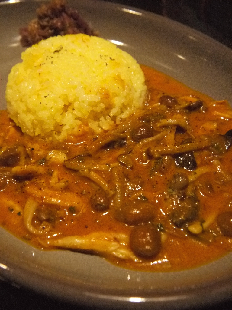 メインのキノコカレーは、その名の通り、様々なキノコをたっぷりと使ったカレー。エスニックなカレーで、適度な辛さがあり、大人の味。サフランライスが添えられていた。- 旅行時期