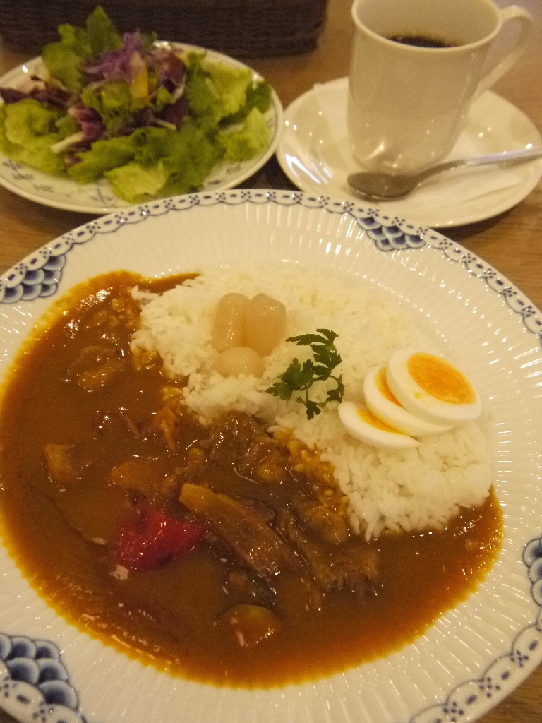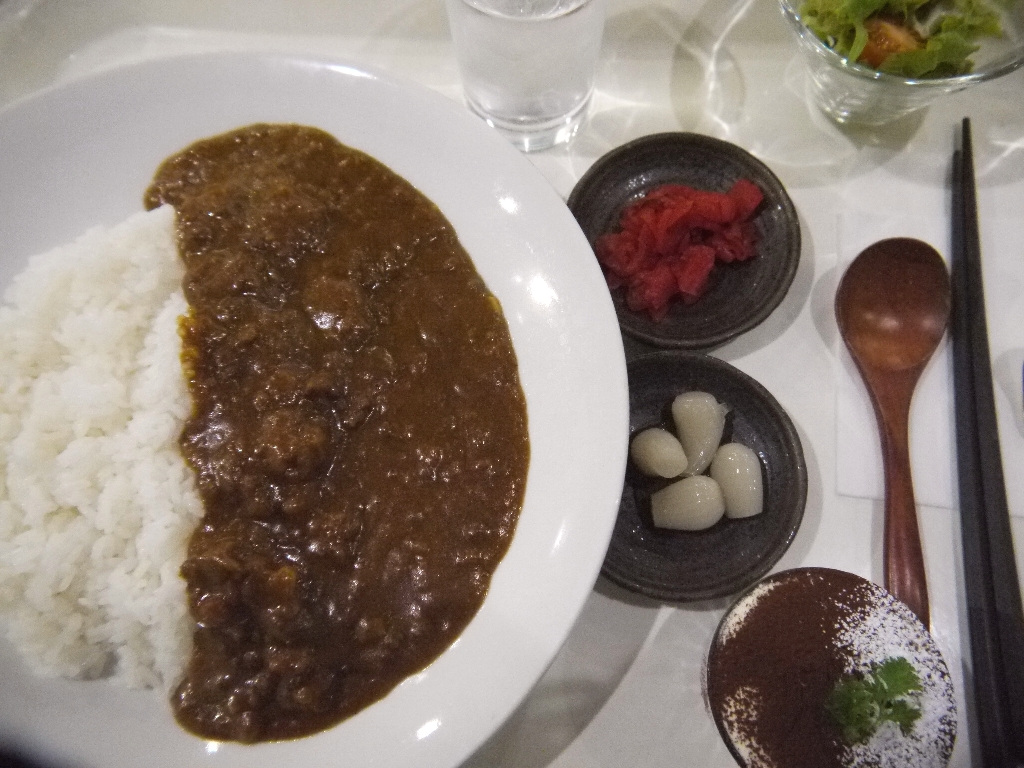 鶏ガラと香味野菜で、ブイヨンを取り、じっくりと煮込み、ひじきや黒胡麻、大豆を加えたビーフカレー。更にカツをトッピングするという豪快振り。- 旅行時期