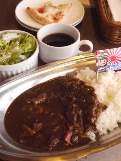これまでの海自カレーはライスが付いていたが、当店ではナンが付いた。カレーに浸しながら食べるナンは矢張り美味しい。