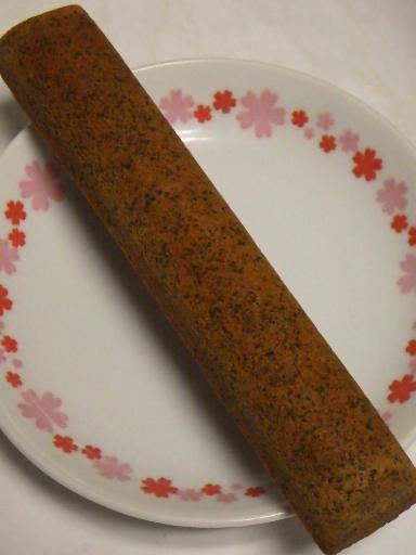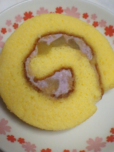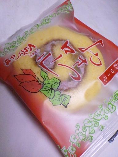 刻んだ薩摩芋を含んだ薩摩芋クリームを、ケーキでロールしている。
