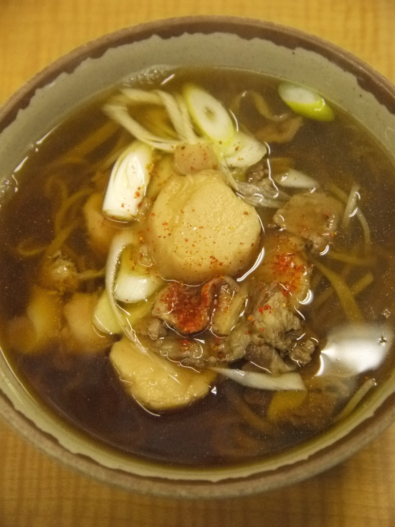 いも煮とあって、具はとろける様な里芋がメインだが、牛筋肉も入っていて、蛋白質も摂取出来る様になっている。他に、シャキシャキのネギや、山形特産品の玉コンニャクも入っていて、様々な食感を堪能出来る。- 旅行時期