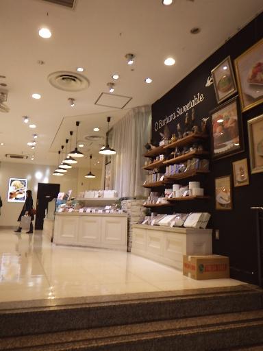 カフェの横に洋菓子販売カウンターがあり、入店しなくても洋菓子を購入出来る様になっている。