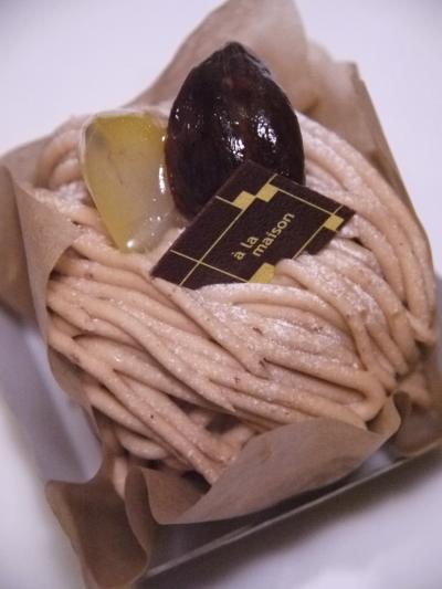 マロン風味のショートケーキを土台に(ショートケーキを土台にしたモンブランは、なかなか無い)、カットした栗と、生クリームを盛り、マロンベーストを絞り、マロングラッセと栗の甘露煮とチョコレートをトッピングしている。