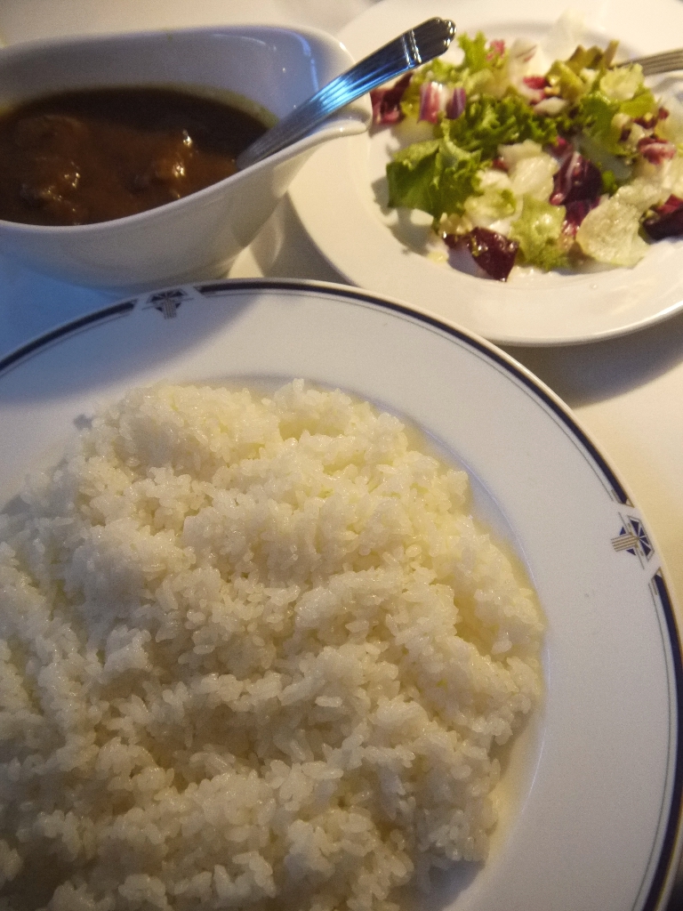 カレールーは、その名に恥じず、ビーフがたっぷり。ビーフは、一緒に煮込んであるのではなく、別に調理され、投入されたらしい。ピリ辛で、カレーらしいカレーと言える。
