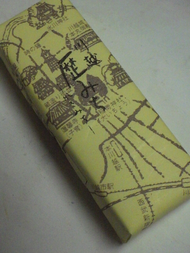 川越の特産品であるサツマイモを使って作り上げられた一口サイズの羊羹(一口で食べようと思えば食べられるが、そうすると勿体無い気がするが)。小豆は一切使われていない為、綺麗な黄色になっているのが特徴。