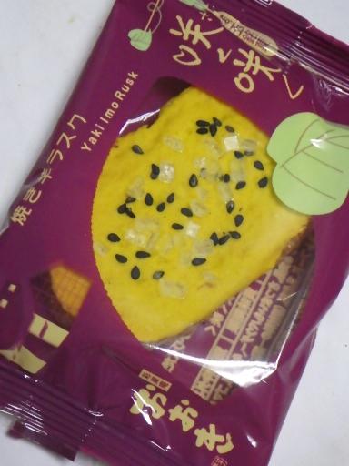 パンに薩摩芋パウダーを塗して焼き上げ、ラスクに加工したらしい。