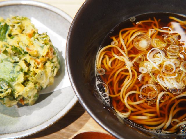 温かいそば(春菊天)は、当店が提供する蕎麦の1種。