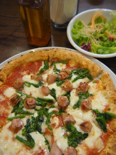 今回、ソーセージと菜の花のトマトソースのピッツァを選んだ。