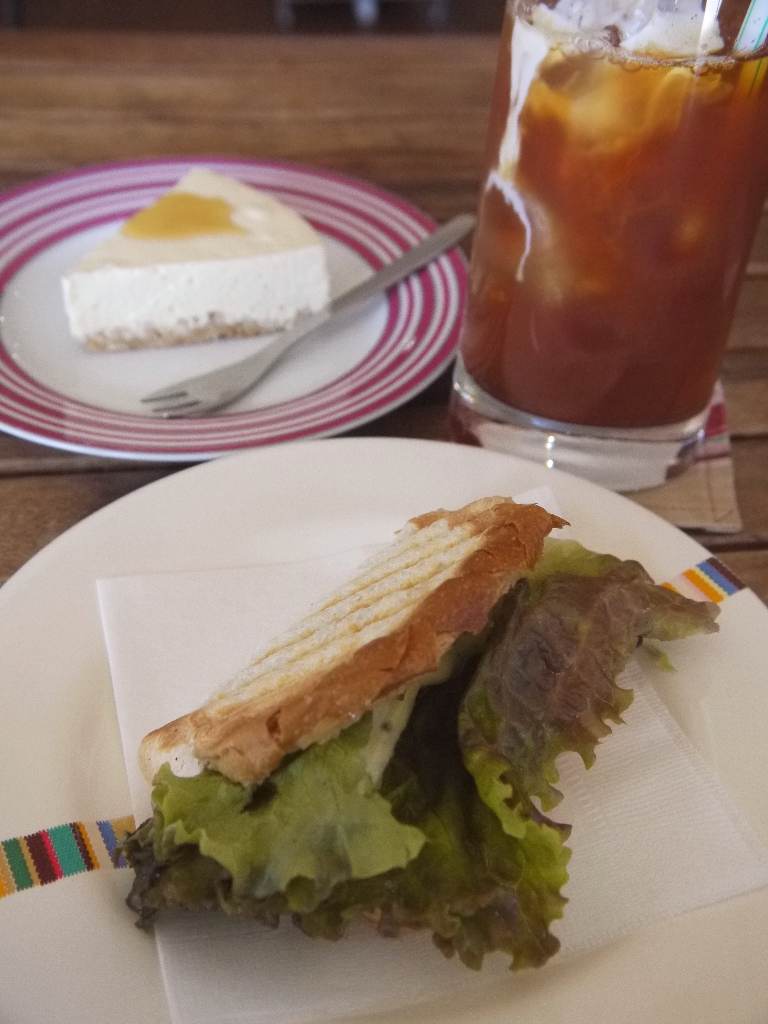 ホットサンドというと、プレスサンドを連想するが、当店のはそうではないらしい。パンにはプレスしたかの様な焼きめが付いていて、中の具は熱々だったものの、閉じられてはおらず、更にレタスを挟んでいた。