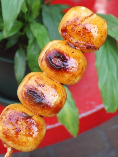 もっちりとした団子と、醤油の塩気と香ばしさが見事マッチ。みたらしとは異なり、甘味料は加えられていない筈だが、ほんのりと甘みも感じられる。- 旅行時期