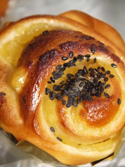 上部にはスライスアーモンドが塗されており、ふかふかパンとは対照的な、ポリポリの食感を演出している。- 旅行時期