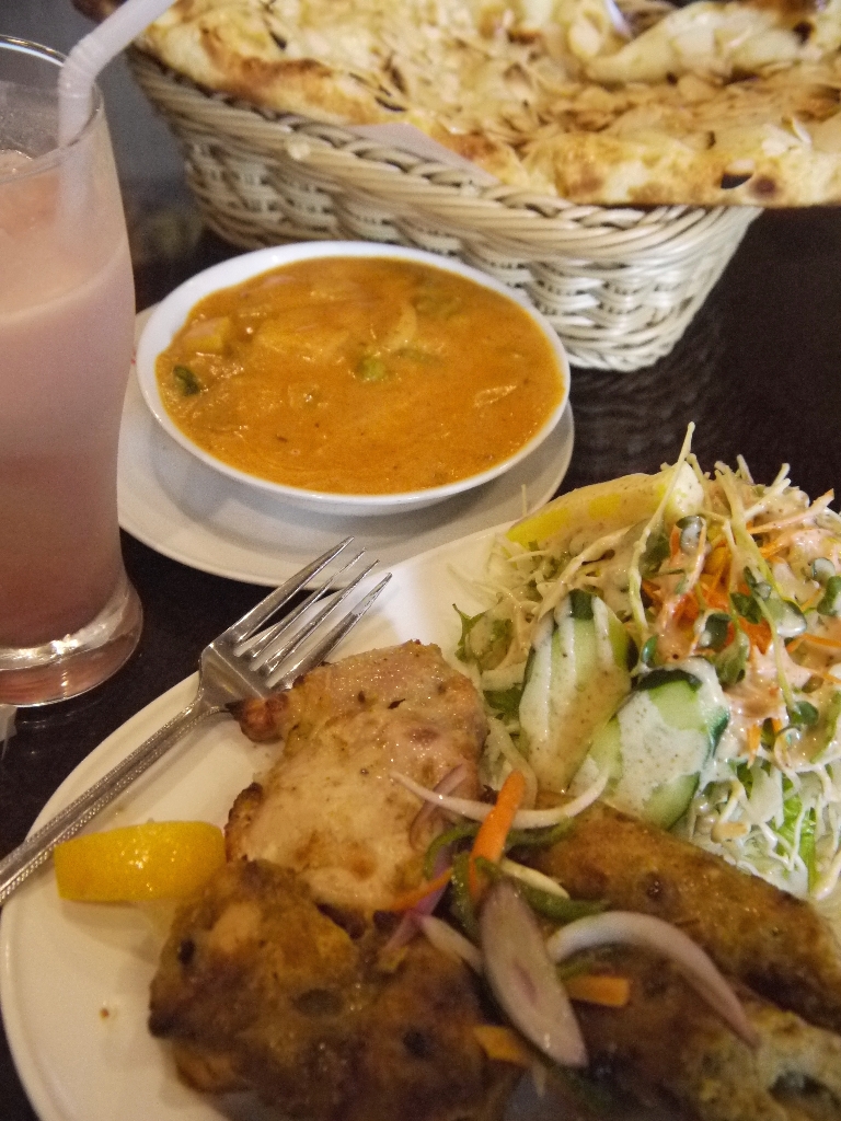タンドリーはシシカハブと、チキンの串焼き2種類だった。ジューシーで、柔らかく、味もしっかりと付いていた。