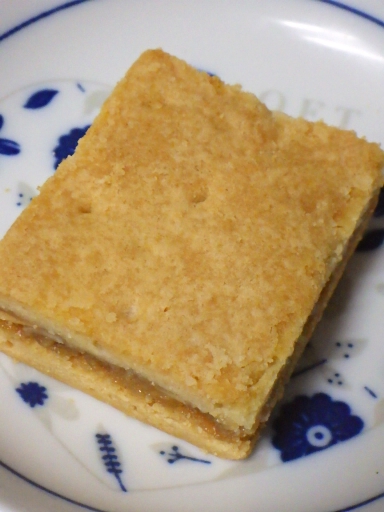 しっとりとしたサブレで、ローストした胡桃やアーモンドのフィリングをサンド。