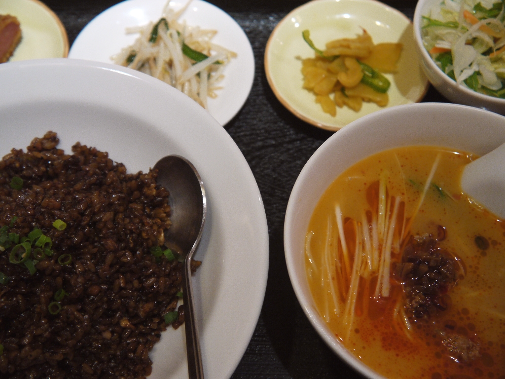 炒飯は五目炒飯と黒炒飯から選べ、ラーメンも数種類から選べる。今回、黒炒飯と担々麺を選んだ。