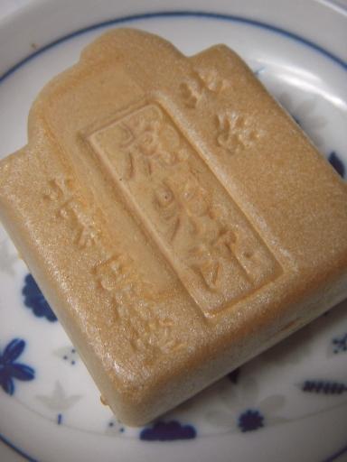 これまで食べてきた金つばは、正方形に成形されていたが、これは何故か丸型に成形されていた。